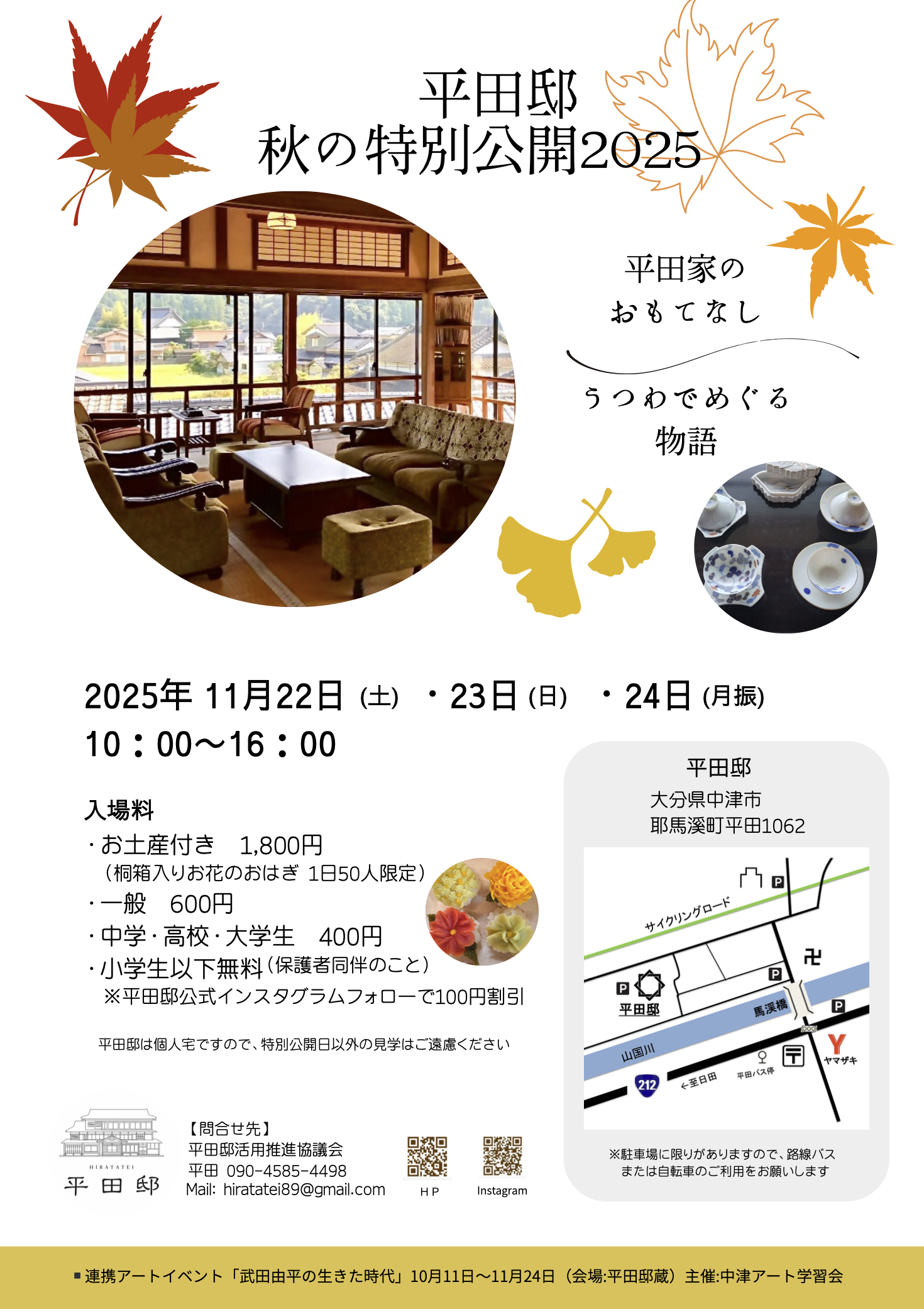 「平田邸 秋の特別公開2025 ~平田家のおもてなし うつわでめぐる物語~」開催のお知らせ